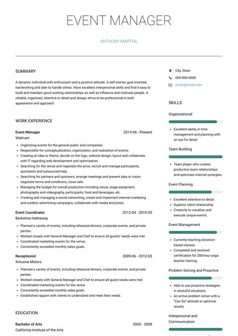 Event Manager Resume - This article includes examples of proven. 16 event manager resume examples and templates for 2024. For event managers, an impactful resume should emphasize your ability to orchestrate seamless and memorable events. Creating a strong resume for an event manager role is key to landing the job you want. An event manager excels in planning, coordination, and.