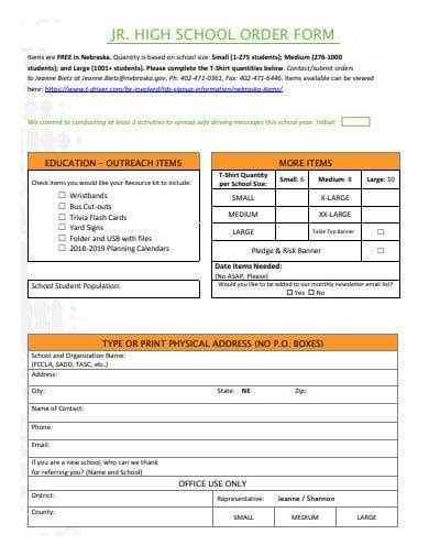 Fillable Online 19+ School Order Form Templates in PDFDOC Fax Email